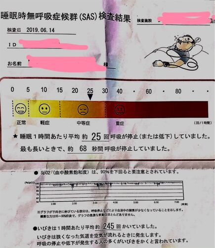 先日、毎月のF先生の診察日に行ってきました。先月やった睡眠時無呼吸症候群の結果が出ていました。 以前が20くらいだったから、やっぱりひどくなってます。いびきは245回( ;∀;)呼吸が止まって再開する時に出るみたい。とはいえ、重症ではないので、CPA…
